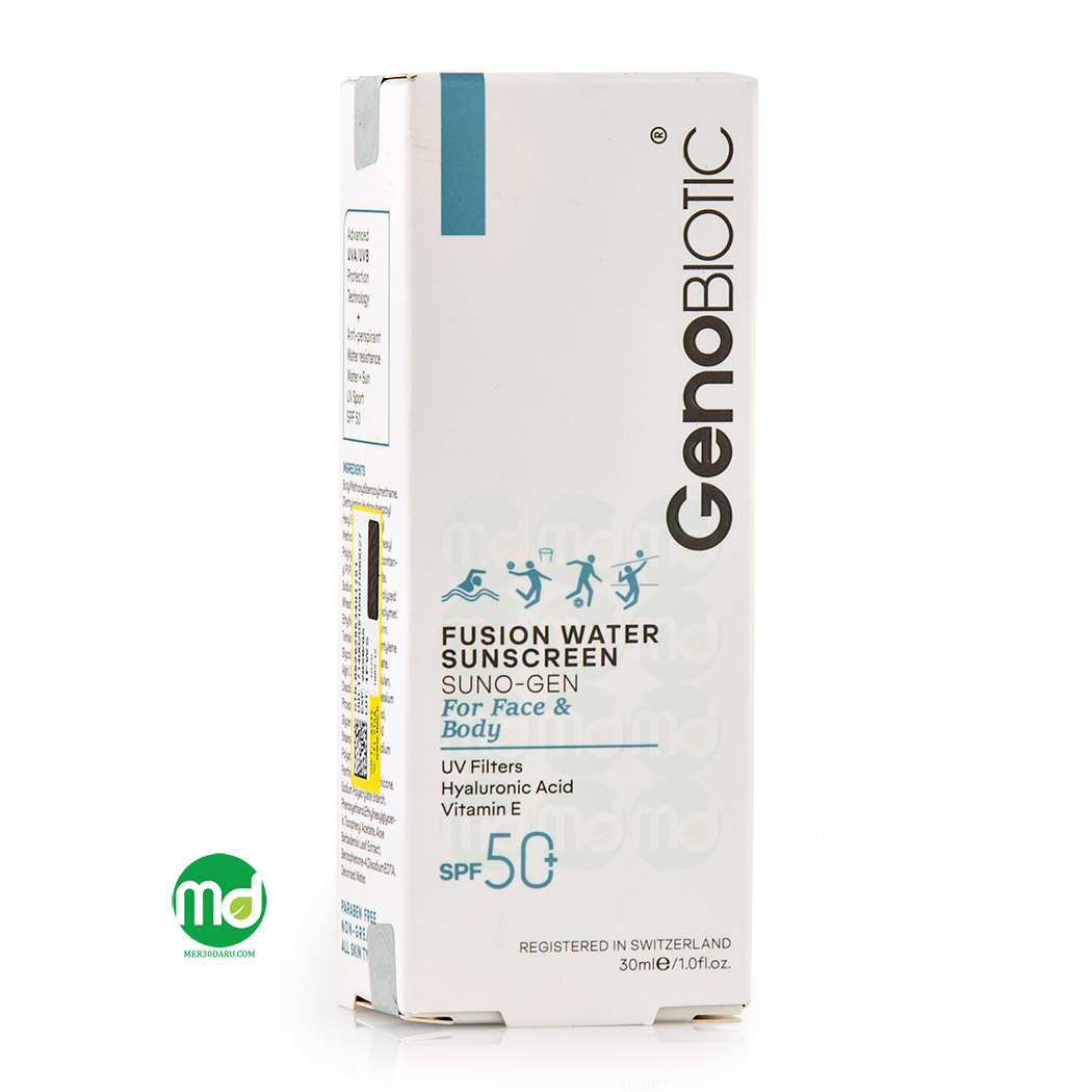 ضد آفتاب فیوژن واتر ژنو بایوتیک بر پایه آب ساخته شده است، بهترین همراه شما برای انجام انواع ورزش های آبی، پیاده روی و سایر ورزش ها که در فضای آزاد و زیر نور خورشید انجام می دهید. این ضد آفتاب ژنو بایوتیک از پوست صورت و گردن در برابر رادیکال های آزاد و اشعه های مضر آفتاب محافظت کرده و مانع از ایجاد لک و تیرگی روی پوست می شود. ضد آفتاب فیوژن واتر باعث رطوبت رسانی موثر به پوست شده و از بروز پیری در اثر قرار گرفتن نور خورشید جلوگیری می کند. این محصول دارای فیلترهای محافظتی UVA و UVB بوده که از پوست صورتتان در مقابل اشعه های آفتاب و رادیکال های آزاد مخرب و آسیب رسان محافظت کرده و از اثر گذاری آن ها روی پوست پیشگیری می کند.