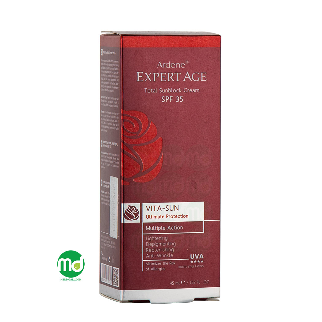 کرم ضد آفتاب ویتا سان اکسپرتیج آردن از پوست شما در برابر آسیب های محافظت کرده و اجازه نمی دهد که دچار چروک شود. با استفاده از این کرم هم از پوست خود در برابر امواج مضر نور خورشید محافظت کنید و هم آن را جوان و شاداب نگه دارید. کرم ضد آفتاب ardene expert age vita sun مانع از پیدایش لک روی پوست شده و در صورت وجود تیرگی ها آن را از بین می برد. همچنین پوست را رطوبت رسانی کرده و از خشک شدن آن جلوگیری می کند تا همیشه به زیبایی بدرخشید.