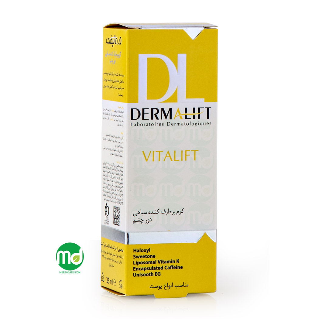 کرم دور چشم ویتالیفت درمالیفت با افزایش گردش خون پوست اطراف چشم، به رفع تیرگی و کبودی دور چشم کمک کرده و همچنین حاوی کمپلکسی از ویتامین ها، برای رفع تیرگی و التهابات چشم می باشد. ماده ای به نام sweetone که یکی از مواد موثر موجود در این محصول است، باعث التیام بخشی پوست شده و خاصیت ضد قرمزی و ضد التهابی برای پوست نواحی دور چشم دارد.