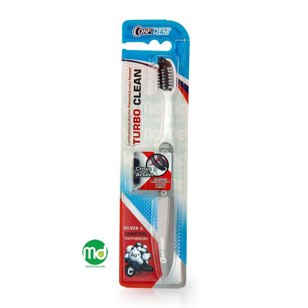 مسواک بزرگسالان کانفیدنت مدل turbo clean با نفوذ به فضای بین دندان ها هر گونه جرم و پلاک را پاکسازی می کند. این مسواک با حذف باکتری و جرم دندان ها از پوسیدگی و ایجاد بوی نامطبوع دهان جلوگیری می کند. مسواک بزرگسال کانفیدنت با حذف باکتری و جرم دندان ها به سالم و سفید ماندن دندان های شما عزیزان کمک شایانی می نماید. مسواک توربوکلین با الگوی کاشت زاویه دار علاوه بر پاکسازی دندان های جلو به راحتی دندان های عقب را نیز تمیز می کند.
