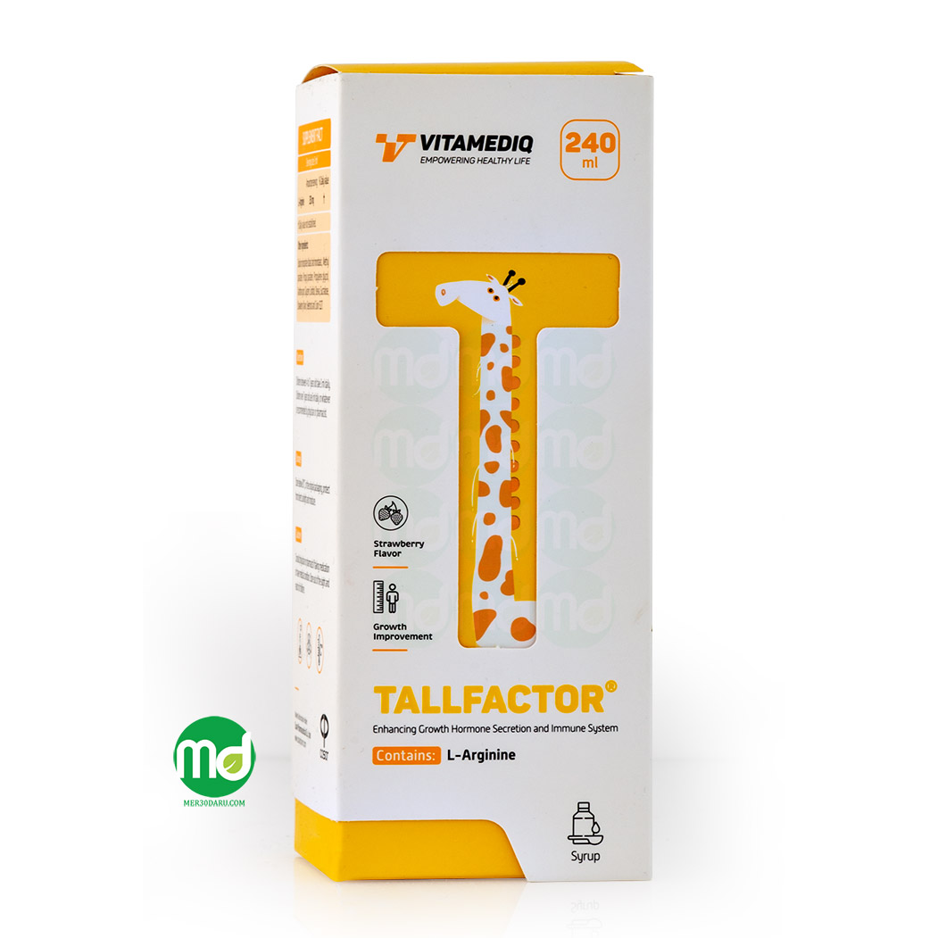 شربت تالفکتور ویتامدیک به واسطه ال آرژنین خود می تواند به عنوان یک مکمل کمکی در رشد قدی کودکان موثر باشد. تالفکتور حاوی 250 میلی گرم ال آرژنین در هر 3 میلی لیتر بوده که به ترشح هورمون رشد کمک کرده و نقش مهمی را در رشد کودکان ایفا می کند. با استفاده از این شربت رشد قدی کودکانتان به میزان چشمگیری افزایش یافته که از مهمترین نتایج این آمینو اسید در بدن آن ها می باشد. شربت تالفکتور ویتامدیک علاوه بر علاوه بر این، سیستم ایمنی بدن را تقویت نموده و کیفیت زندگی فرزندان شما را ارتقاء می دهد. همچنین این مکمل با طعم خوش و دلپذیر توت فرنگی برای کودکان طراحی گردیده و پذیرش آن را برای کودکان آسان تر می نماید.