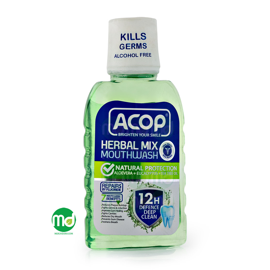دهانشویه هربال میکس آکوپ با قدرت پاک کنندگی قوی به طور کامل ذرات باقی مانده مواد غذایی، آلودگی و پلاک انباشته شده بر روی دندان را پاکسازی می کند. این محلول پاک کننده با حذف کامل باکتری های دندان از بروز بوی نامطبوع دهان پیشگیری می کند. کاهش التیام لثه، بهبود خشکی دهان، پیشگیری از مشکلات لثه و افزایش استحکام دندان از دیگر ویژگی های چشم گیر دهانشویه 12 ساعته آکوپ می باشد.