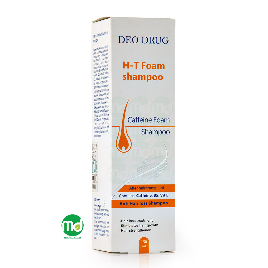 شامپو فوم مخصوص کاشت مو دئو دراگ علاوه بر تمیز نمودن مو، به فولیکول های مو مواد مغذی را رسانده و آن ها را تقویت می کند. ترکیبات به کار رفته در این شامپو فوم دئو دراگ سبب جلوگیری از بروز عفونت های باکتریایی گردیده و از عفونت در محل های کاشته شده مو ممانعت می کند. شامپو فوم دئو دراگ به واسطه کنترل چربی پوست سر، مانع از بروز شوره و خارش در پوست سر گردیده و می تواند در موفقیت پیوند مو اثر گذار باشد. این شامپو می تواند التهاب، سوزش و قرمزی پس از کاشت را کاهش دهد روند ترمیم زخم های ناشی از پیوند را تسریع ببخشد. در این محصول از کافئین و عصاره های گیاهی استفاده شده است.