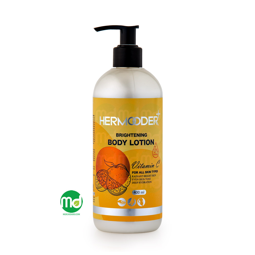 لوسیون بدن روشن کننده هرمودر با تکیه بر ترکیبات پیشرفته و کاربردی راهکاری ایده آل برای کاهش لک های تیره و یکدست نمودن رنگ پوست می باشد. لوسیون روشن کننده هرمودر رطوبت مورد نیاز را برای پوست تامین نموده و از خشکی و کشیدگی آن جلوگیری می نماید. این محصول با ایجاد ساختاری سبک به پخش یکنواخت مواد موثره روی سطح پوست کمک کرده، نرمی و لطافت طولانی مدتی را به پوست می بخشد. لوسیون بدن انواع پوست هرمودر یک گزینه مطمئن و امن برای برای انواع پوست به ویژه پوست های کدر و مستعد لک به شمار می رود. همچنین این محصول به واسطه ویتامین C خود درخشش طبیعی پوست را افزایش داده و از پوست در برابر آسیب های محیطی محافظت می کند.