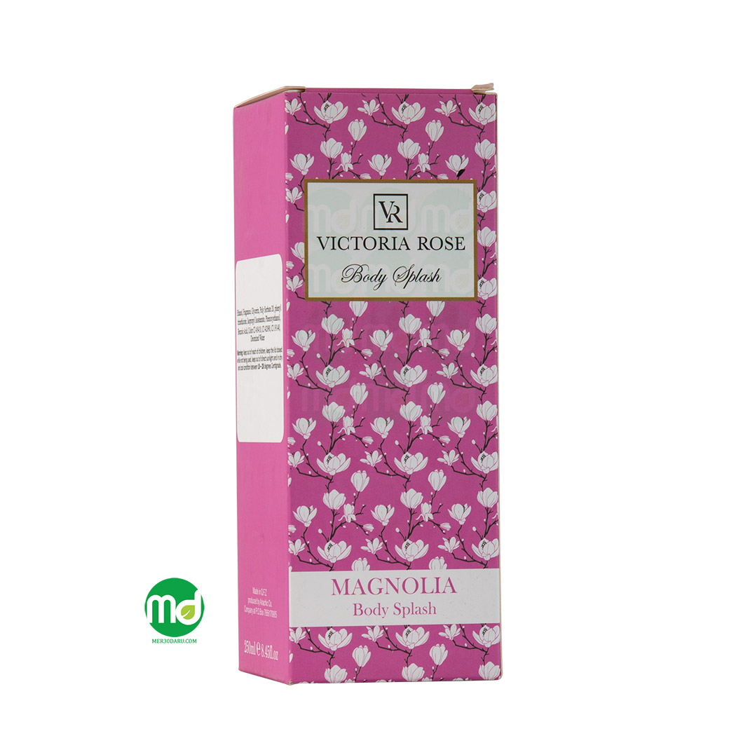 بادی اسپلش مگنولیا ویکتوریا رز متشکل از نت های میوه ای و گلی توجه بانوان با سلیقه و خاص پسند را به خود جلب می کند. اسپری خوشبو کننده بدن ویکتوریا رز با ترکیبی از نت های پیچیده و فریبنده امکان استفاده در چهار فصل و موقعیت های مختلف را فراهم می آورد. این اسپری خوشبو کننده با موقعیت هایی چون محیط کار، دورهمی های دوستانه و قرار های عاشقانه سازگاری دارد و از ماندگاری و پخش بو فوق العاده ای برخوردار می باشد. با اسپری کردن این خوشبو کننده بدن در شلوغی دورهمی ها و مهمانی ها حضور یک زن جسور و شیک پوش را نمایان ساخته و توجه همگان را به سوی خود جلب نمایید.