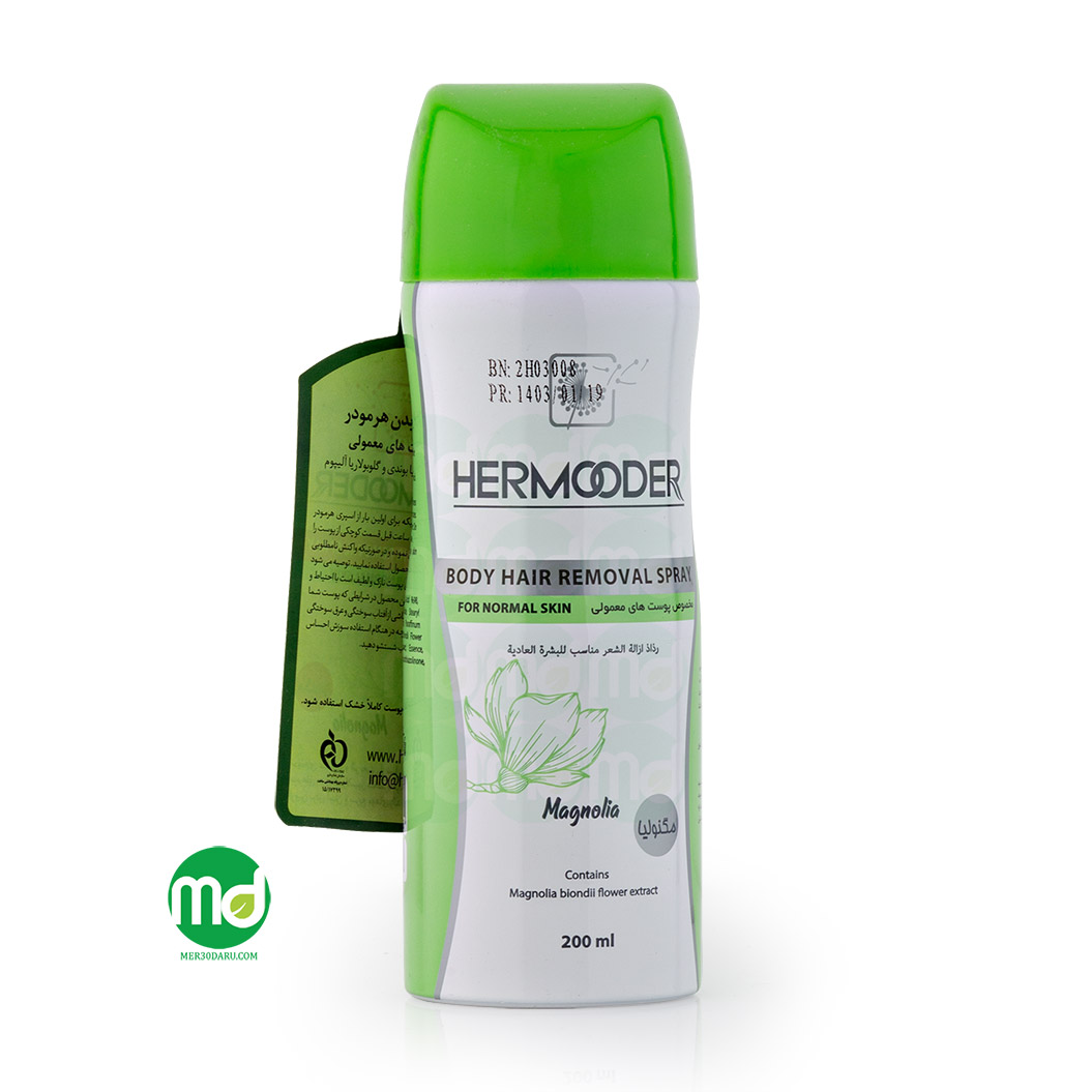 اسپری موبر بدن هرمودر به منظور رفع موهای زائد در مدت زمان کم متناسب با پوست های معمولی تولید شده است. پس از مصرف موبر هرمودر رایحه ای خوش از آن بر روی پوست باقی می ماند که ناشی از عصاره بلودیزی و آلوئه ورا می باشد. آلوئه ورای موجود در اسپری موبر بدن هرمودر مدل مگنولیا از ایجاد التهاب پس از اصلاح پیشگیری می کند. اسپری موبر پوست نرمال هرمودر بدون دخالت دست موهای زائد نواحی گسترده و سخت را بدون ایجاد حساسیت پاکسازی می کند. این محصول اثربخشی بی نظیری داشته و ترکیبات طبیعی آن سبب افزایش نرمی و لطافت پوست می شود. همچنین در صورت استفاده منظم از این محصول، رشد موهای زائد ضعیف تر گردیده و به صافی و نرمی پوست کمک می کند.