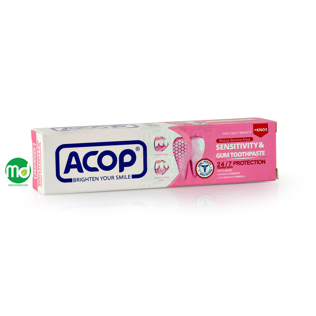 خمیر دندان سفید کننده آکوپ از خاصیت ضد پلاک و آنتی باکتریال برخوردار بوده که با زدودن باکتری های فواصل بین دندان ها از ایجاد لک های زرد و پوسیدگی دندان جلوگیری می نماید. این خمیر دندان باکتری های تجمع یافته بر روی دندان که یکی از عوامل بروز بوی بد دهان است را برطرف نموده و باعث خوشبو شدن دهان می گردد. به دلیل استفاده از ترکیبات ضد حساسیت و گیاهی افراد داری دندان های حساس می توانند از خمیر دندان 24 ساعته آکوپ استفاده نموده و از درخشش دندان های خود لذت ببرند. رفع حساسیت دندان، کاهش تحریکات عصبی، حذف جرم با سایندگی کم و افزایش درخشش دندان ویژگی هایی است که خمیر دندان مناسب دندان های حساس آکوپ را نسبت به سایر خمیر دندان ها متمایز می سازد.