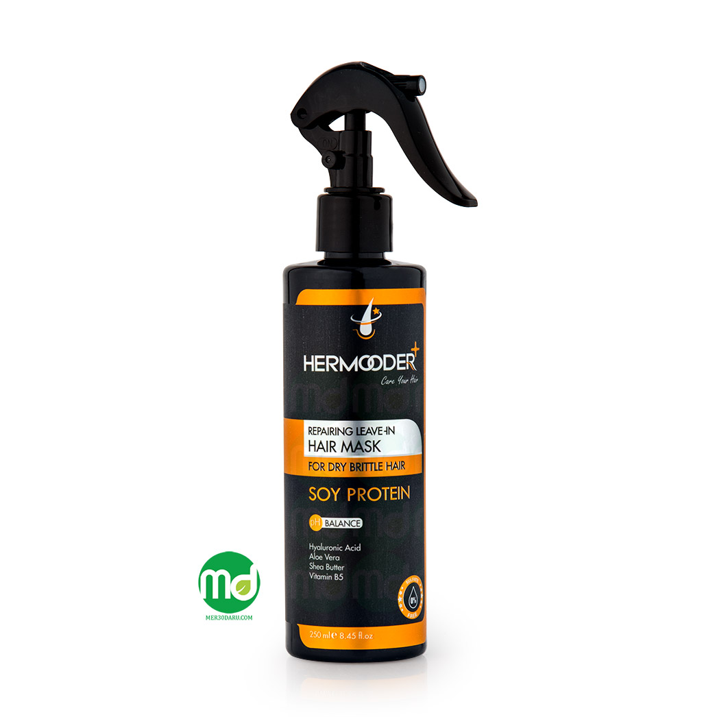 ماسک مو بدون نیاز به آبکشی هرمودر یک ماسک مو جادویی بعد از استحمام برای افرادی است که موهای خشک و شکننده دارند. ترکیبات مغذی و موثر موجود در این ماسک تارهای عمیق مو را رطوبت رسانی نموده و سریعاً باعث رفع خشکی، شکستگی و گره خوردگی موهایتان می گردد. عصاره آلوئه ورا، روغن نارگیل و پروتئین سویا از ترکیبات ماسک مو ترمیم کننده هرمودر است که با نفوذ به عمق ساختار مو، تارهای خشک و شکننده مو را تقویت نموده و در نهایت ضخامت و درخشش موهایتان را افزایش می دهد. ساقه های مو با مصرف این ماسک فوق العاده مرطوب و انعطاف پذیرتر گردیده و شانه پذیری آن تسهیل می یابد. مصرف منظم این ماسک بعد از هر بار استحمام موهایی درخشان، لطیف، صاف و مرتب برایتان به ارمغان می آورد.