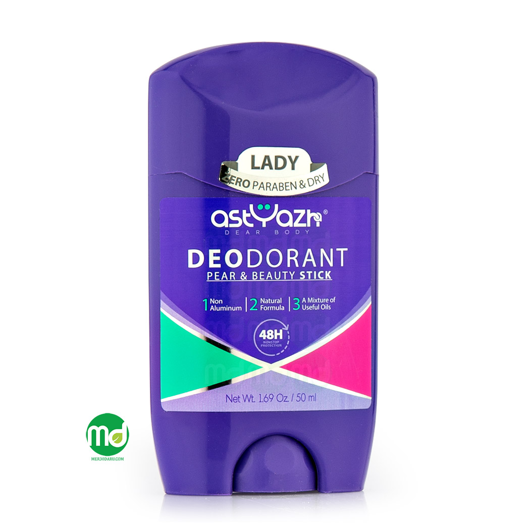 تعریق یک واکنش طبیعی در بدن انسان است که به دلیل انجام فعالیت های سنگین و جنب و جوش بالا رخ می دهد. تعریق بیش از حد و کنترل نکردن آن بوی نامطبوع و آزاردهنده ای را برای شما و اطرافیانتان پدید می آورد. ما به کمک شما آمده ایم تا با معرفی استیک آستیاژا نگرانی شما بابت بروز تعریق در روزهای پر مشغله و گرم سال را برطرف نماییم. استیک زنانه آستیاژا با ماندگاری بالا و رایحه دلنشین زنانه، تا 48 ساعت میزان تعریق ناحیه زیر بغل را کنترل نموده و مانع از بروز بوی نامطبوع بدن می گردد. با استفاده از این مام در طول روز، هنگام انجام کارهای سنگین و جنب و جوش بالا نگران تعریق و بروز بوی نامطبوع بدن خود نباشید.
