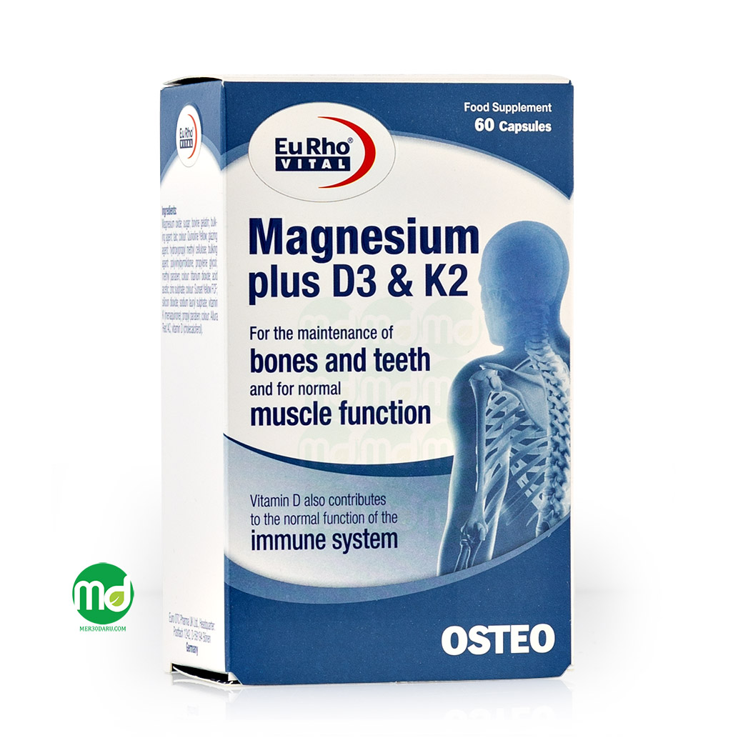 کپسول منیزیم پلاس در هر کپسول خود حاوی 250 میلیگرم منیزیم (به صورت اکساید)، 80 میکروگرم ویتامین K2 و 600 واحد بینالمللی ویتامین D3 است. این ترکیب با تنظیم متابولیسم و انتقال صحیح کلسیم در بدن، به حفظ سلامت استخوان ها کمک کرده و از تجمع کلسیم در بافت های نرم جلوگیری می کند. منیزیم پلاس موجب تقویت عملکرد عضلات، پیشگیری از پوکی استخوان و رفع گرفتگی های عضلانی می شود. به علاوه، ترکیب این ریز مغذی ها در کنارهم، نقش مهمی را در افزایش تندرستی و عملکرد کلی بدن ایفا می کنند.
