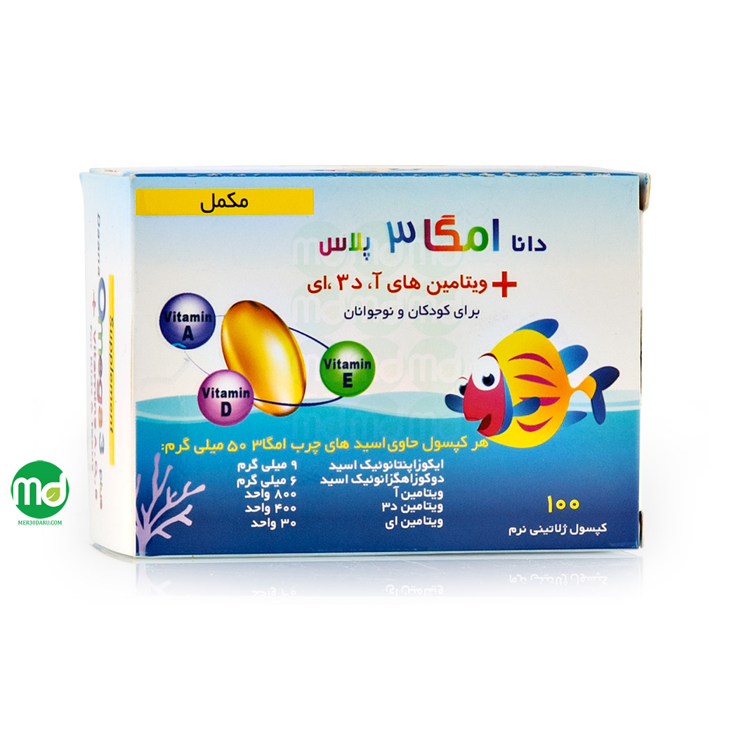 کپسول امگا 3 پلاس دانا به همراه ویتامین A، D3 و E به حفظ سلامت کلی بدن کودکان و نوجوانان کمک می کند. در هر سافت ژل این مکمل 50 میلی گرم امگا 3 به کاربرده شده است که با کاهش فعالیت سلول های تخریب کننده استخوان موجب رشد و حفظ تکامل استخوان ها می گردد. اسید چرب های امگا 3 پلاس دانا می تواند در تقویت سیستم ایمنی بدن کمک کننده باشد و احتمال ابتلا به بیماری هایی چون آنفولانزا و سرماخوردگی را کاهش می دهد. همچنین مصرف منظم کپسول ژلاتینی امگا 3 پلاس در بهبود خواب، بینایی، قدرت یادگیری و افزایش اشتها نقش بسزایی را ایفا می کند.