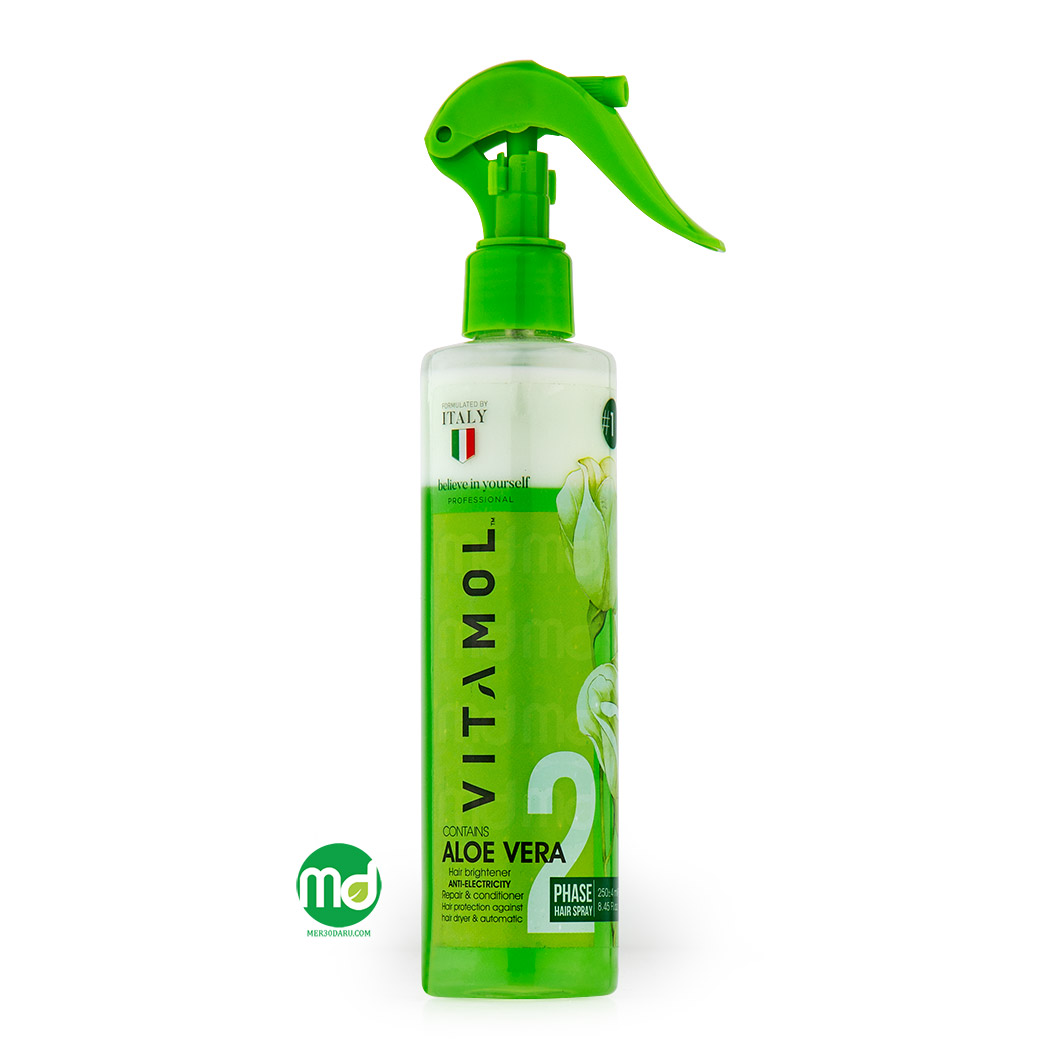 اسپری مو دوفاز ویتامول ساختار موهای خشک را عمیقاً آبرسانی و احیا نموده و شانه پذیری آن ها را آسان تر می کند. این اسپری به عنوان یک محصول مراقبت از مو، علاوه بر براق نمودن موها از تارهای مو در برابر حرارت سشوار و اتو مو محافظت می کند. با فرمولاسیون خاص خود، باعث تقویت ریشه های مو و جلوگیری از شکنندگی آن ها می شود. آلوئه ورا، روغن های گیاهی و ویتامین های مفید موجود در این محصول به طور عمیق به موها نفوذ نموده و آن ها را از داخل تغذیه می کند. استفاده از این این محصول از بروز موخوره جلوگیری کرده، لطافت و نرمی موها را بیشتر می کند.
