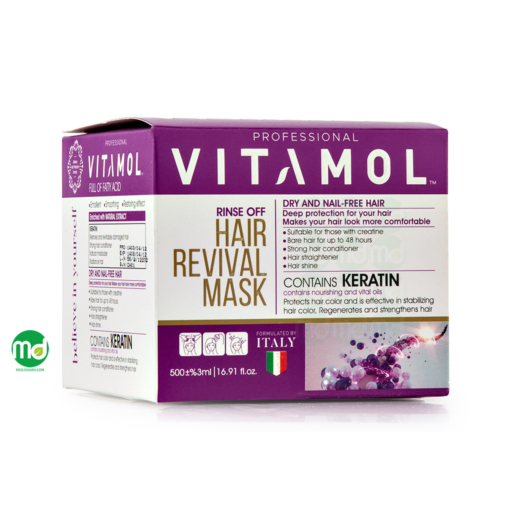 ماسک مو با آبکشی ویتامول حاوی کراتین و ویتامین هایی است که تارهای آسیب دیده مو را به طور قابل شایانی ترمیم می کند. این ماسک مو لطافت و نرمی از دست رفته را به موهایتان بازگردانده و با رطوبت رسانی مناسب، خشکی و زبری مو را برطرف می کند. استفاده منظم آن درخشش طبیعی مو را بیشتر نموده و اثر آسیب های حرارتی و شیمیایی را کمتر نشان می دهد. کراتین موجود در این محصول به صاف شدن تارهای مو کمک کرده و حالت دهی را بهتر می نماید. همچنین ماسک مو کراتین ویتامول با ایجاد لایه ای محافظ بر روی موها حس سبکی و نظم می دهد و ظاهر مو مرتب دیده می شود.