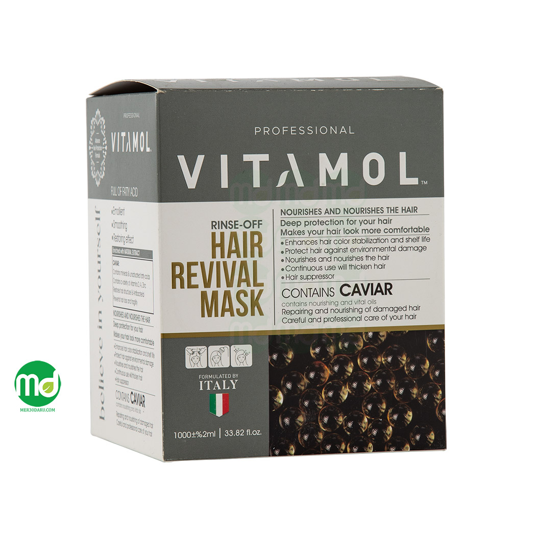 ماسک مو ویتامول حاوی خاویار موهایی که به دلیل عوامل محیطی چون آلودگی و استفاده از مواد شیمیایی مثل رنگ، دکلره و کراتین آسیب دیده است را بازسازی می کند. ویژگی دیگر این ماسک خاصیت آبرسان بودن آن است که با نفوذ به ساقه مو مانع از بروز خشکی، ریزش و شکنندگی موهایتان می گردد.