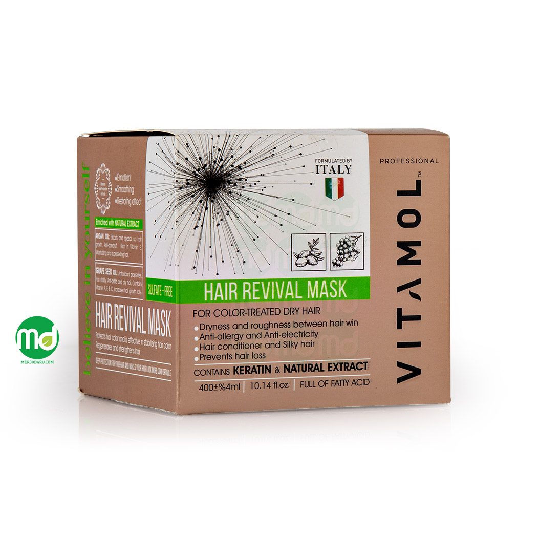 ماسک مو تهیه شده با کراتین و ویتامین های مغذی ویتامول موها را از ریشه تا نوک ساقه به طور کامل تغذیه رسانی می کند. این ماسک با ترمیم و احیای تارهای آسیب دیده ریزش موهایتان را متوقف نموده و حجم آن را افزایش می دهد. افزایش خونرسانی به پیاز مو، متعادل سازی ترشح چربی پوست سر، آبرسانی، کاهش وزی، خشکی و زبری مو از دیگر اثرات این محصول می باشد. بنابراین اگر می خواهید موهایی بدون آسیب و سالم داشته باشید به شما استفاده از این ماسک مو پیشنهاد می شود.