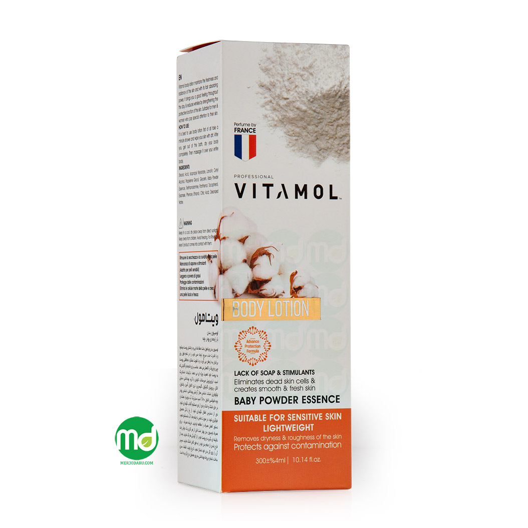 لوسیون بدن رایحه پودر بچه ویتامول با جذب سریع و قدرت نفوذ بالا پوستی لطیف و شاداب را برای شما پدید می آورد. همچنین با ایجاد لایه ای محافظ از پوست در مقابل آلودگی های محیطی مراقبت می کند.