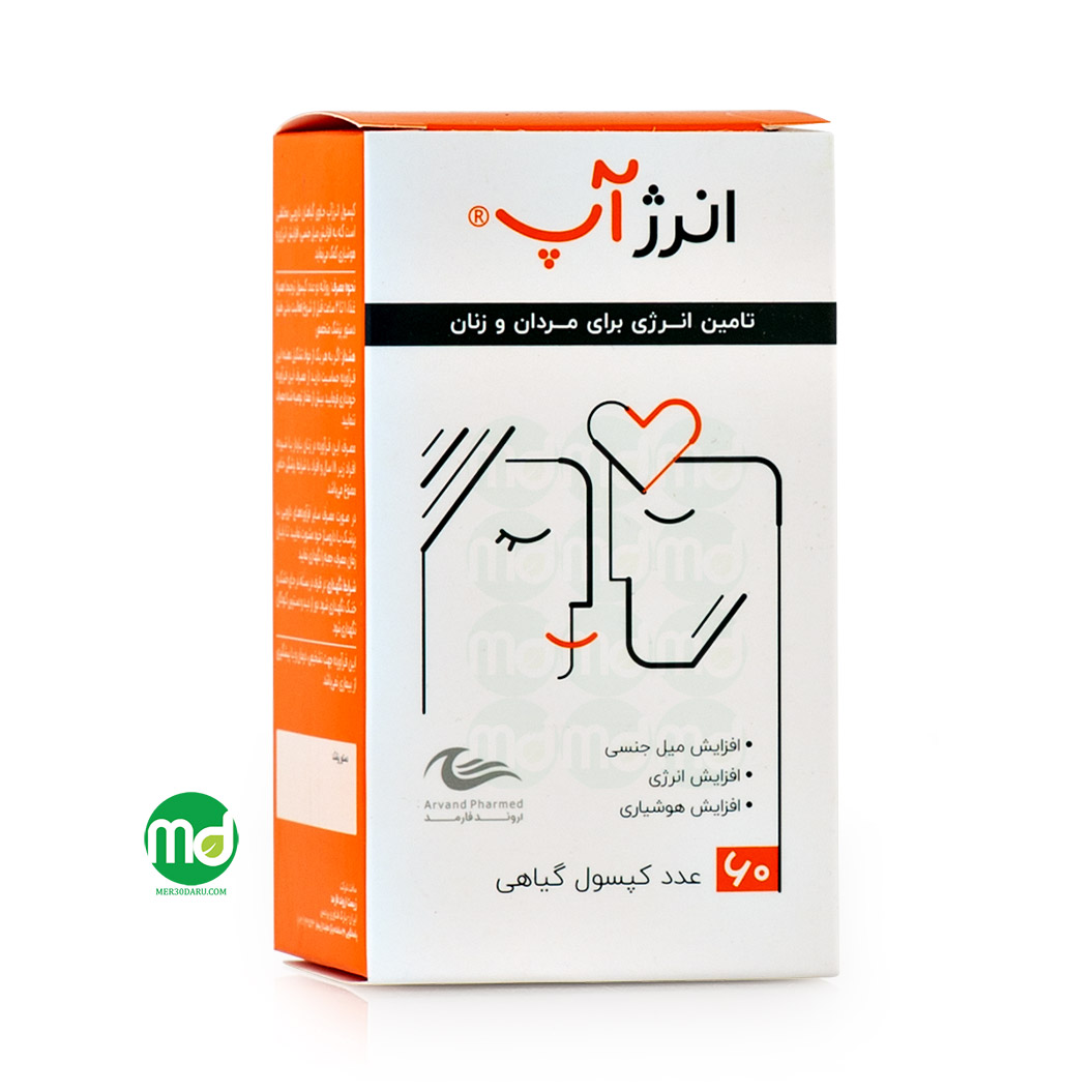 کپسول انرژ آپ اروند فارمد برای افزایش و تقویت قوای جنسی آقایان و بانوان مورد استفاده قرار می گیرد. انرژ آپ حاوی عصاره های چون جینسینگ کره ای، پودر نخل اره ای، عصاره پودر خارخاسک و ال آرژنین است برای رفع مشکلات جنسی کاربرد دارد. کپسول تقویت جنسی اروند فارمد علاوه بر اثرات مطلوب در تنظیم سطح هورمون ها با ارتقاء هوشیاری می تواند در ارتباط باشد. به دلیل دارا بودن اثرات آنتی اکسیدانی برای بهبود عملکرد سیستم ایمنی موثر بوده و با کاهش خستگی همراه است. استفاده روزانه و مرتب از این مکمل منجر به بهبود عملکرد جنسی گردیده و اختلال نعوظ در آقایان را برطرف می کند.