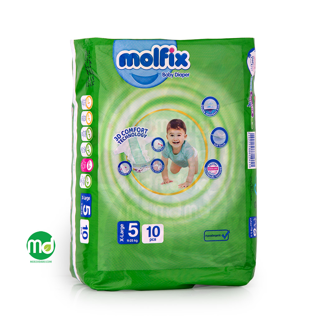 پوشک بچه سایز 5 مولفیکس دارای نشانگر تعویض